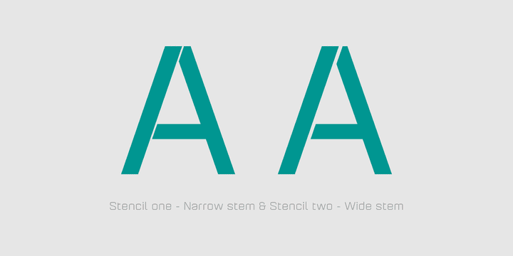 Aguda Stencil font family is the stencil version of the Aguda font family and has been designed for Graviton Font Foundry by Pablo Balcells in 2014. Aguda Stencil consists of 16 styles. The 8 “Stencil 1” styles contain a narrow stem for big sizes type and/or rigid materials printing, and the 8 “Stencil 2” styles contain a wide stem for small sizes type and/or light materials printing.
