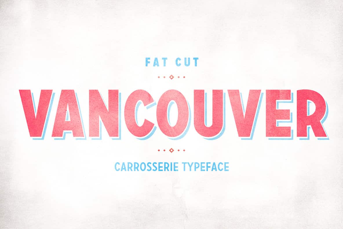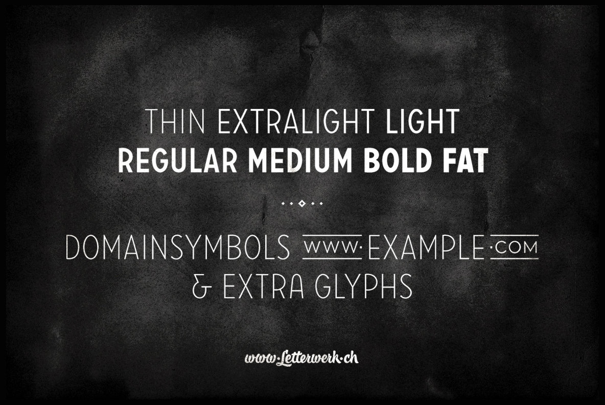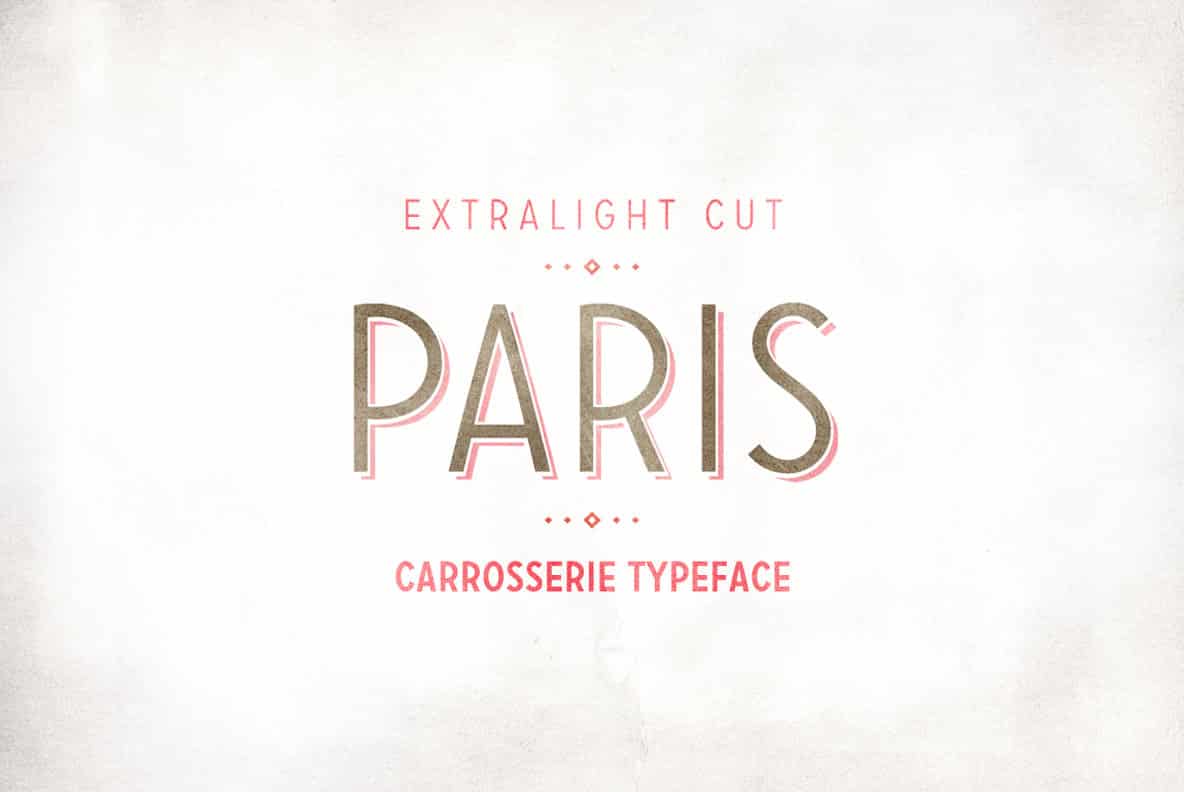 Carrosserie is made for display use, inspired by the shapes of the ’30s. It is a capital letter font with alternate characters and special domain symbols (check the PDF in the gallery for details). The font is now available in thin, extra light, light, regular, medium, bold & fat. Enjoy!