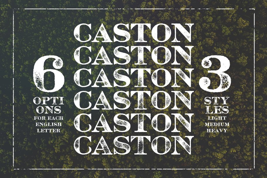 - Caston Inked is full cap typeface, consists of 3 styles – light, medium, and heavy.