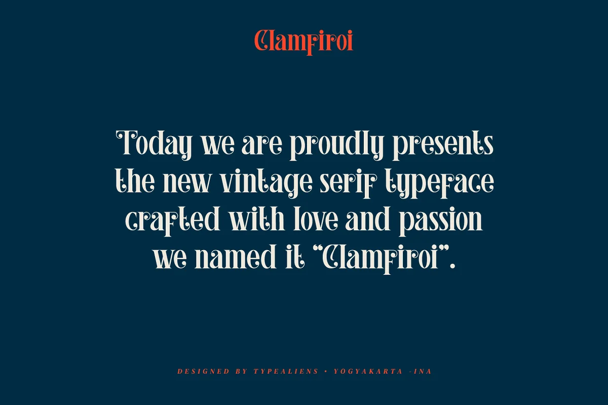 Clamfiroi is a sans serif font that is quite unique, because some characters have a stroke shape that is quite unique. A font that is very suitable to support designs that are modern/vintage, formal designs, clean and simple designs.