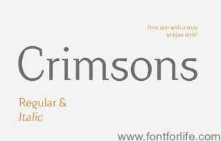 HomeFree FontsCrimsons � Regular & Italic Crimsons � Regular & Italic Share FacebookTwitterVKReddItTumblrWhatsAppMixLinkedin Click To Download Download freefonthttps://www.fontforlife.com 2020-05-05 Crimsons � Regular & ItalicCrimsons � Regular & Italic Download LEAVE A REPLY Cancel reply Comment: Please enter your comment! Name:* Please enter your name here Email:* You have entered an incorrect email address! Please enter your email address here Website: Save my name, email, and website in this browser for the next time I comment. {{#message}}{{{message}}}{{/message}}{{^message}}Your submission failed. The server responded with {{status_text}} (code {{status_code}}). Please contact the developer of this form processor to improve this message. Learn More{{/message}}{{#message}}{{{message}}}{{/message}}{{^message}}It appears your submission was successful. Even though the server responded OK, it is possible the submission was not processed. Please contact the developer of this form processor to improve this message. Learn More{{/message}}Submitting… Search FontforlifeJoin Group https://www.fontforlife.com #font #freefont #graphicdesign #fonts #webdesign #design #fontdownload Reviews Liniga Serif Font Olster Script Font Free Download Midnight Story Font Syantic Font Related Articles Satomy Handwritten Font Nabana Display Font Midnightman Display Font Fresh Steak Font Rondos Display Typeface Font Balona Font Andove Font Hoax Font Alletha Font Phraell Font Niasec Lux Rasfire Font