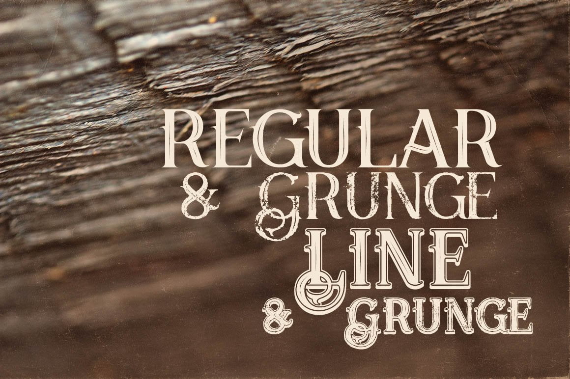 Unique vintage style custom font with 4 styles: regular and grunge, line & line grunge