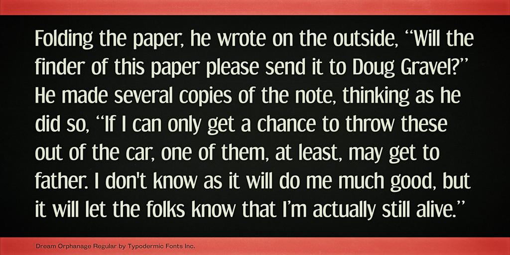 HomeFree FontsDream Orphanage Font Dream Orphanage Font Share FacebookTwitterVKReddItTumblrWhatsAppMixLinkedin Click To Download Download freefonthttps://www.fontforlife.com 2019-09-20 Dream Orphanage FontDream Orphanage Font Download LEAVE A REPLY Cancel reply Comment: Please enter your comment! Name:* Please enter your name here Email:* You have entered an incorrect email address! Please enter your email address here Website: Save my name, email, and website in this browser for the next time I comment. {{#message}}{{{message}}}{{/message}}{{^message}}Your submission failed. The server responded with {{status_text}} (code {{status_code}}). Please contact the developer of this form processor to improve this message. Learn More{{/message}}{{#message}}{{{message}}}{{/message}}{{^message}}It appears your submission was successful. Even though the server responded OK, it is possible the submission was not processed. Please contact the developer of this form processor to improve this message. Learn More{{/message}}Submitting… Search FontforlifeJoin Group https://www.fontforlife.com #font #freefont #graphicdesign #fonts #webdesign #design #fontdownload Reviews Weather Font FIgurehead Font Popstone – Groovy Variable Font Mobilla Font Related Articles Satomy Handwritten Font Nabana Display Font Midnightman Display Font Fresh Steak Font Rondos Display Typeface Font Balona Font Andove Font Hoax Font Alletha Font Phraell Font Niasec Lux Rasfire Font