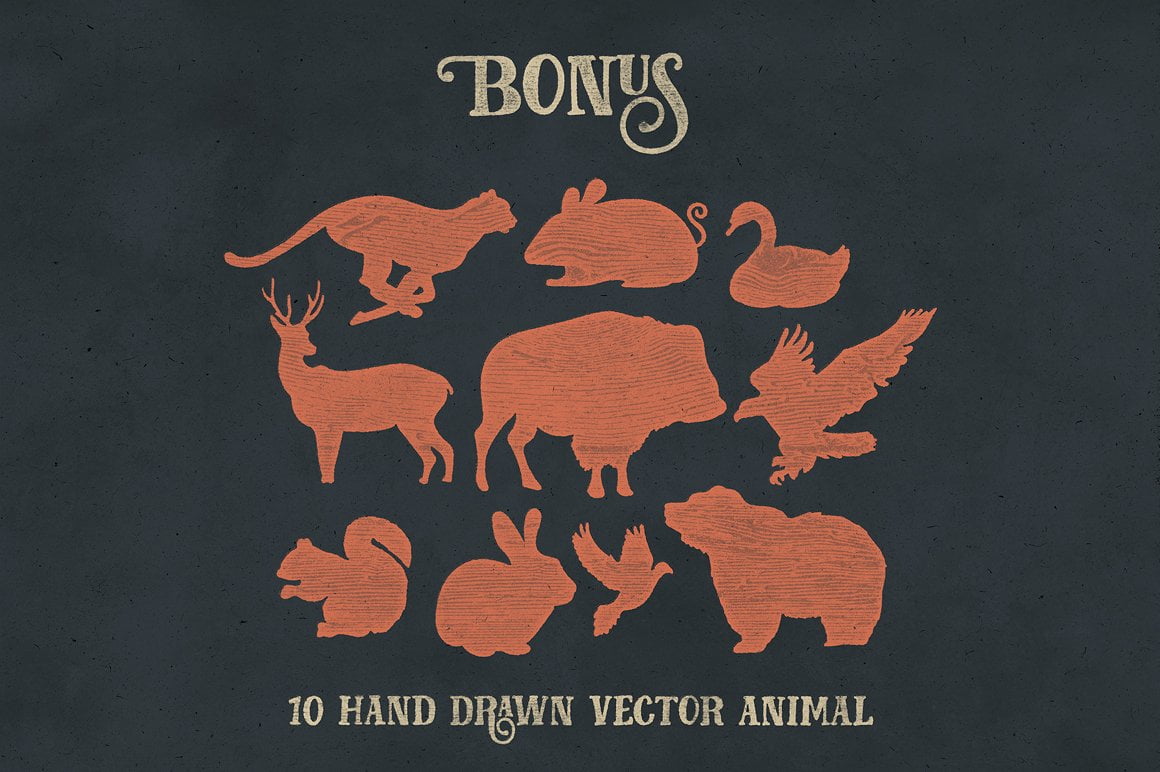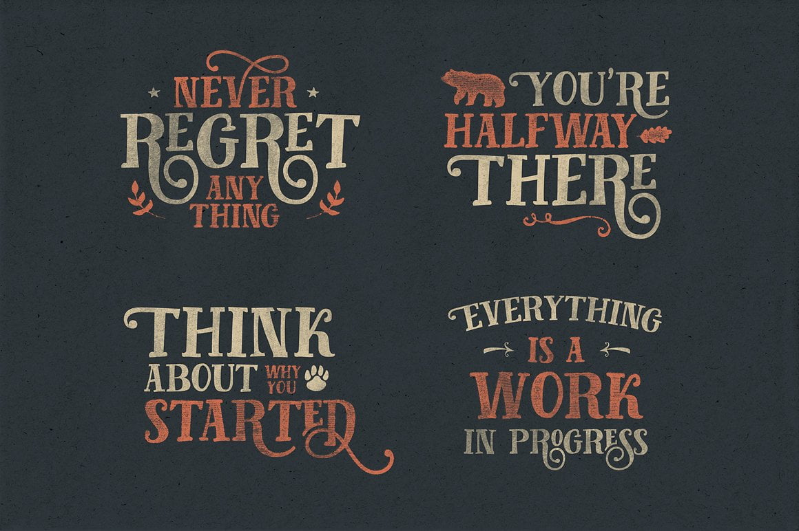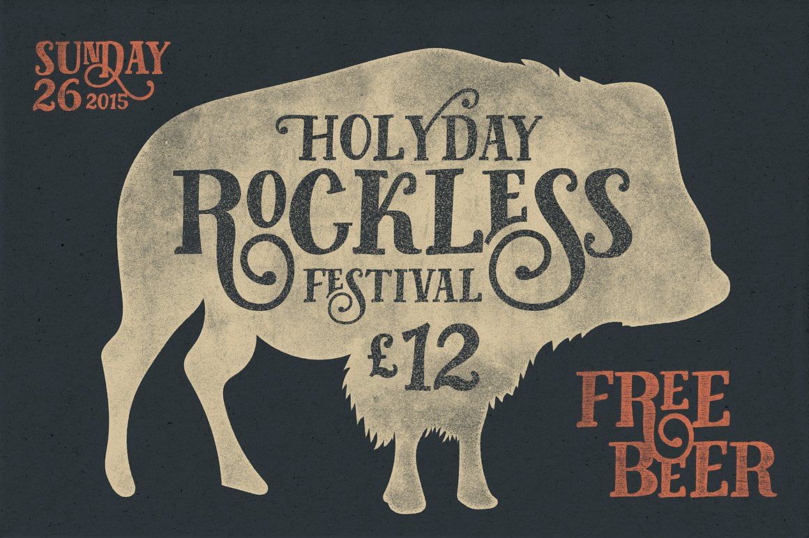 Fairy Tales is a display type, inspired by classic advertisements and movie posters. Although it also suitable for another purpose such as headline, insignia, badge, wedding invitation, greeting cards, etc. With a combination of highly vintage feels and the OpenType features put together on it, you can easily create an harmonic attractive message for your design.