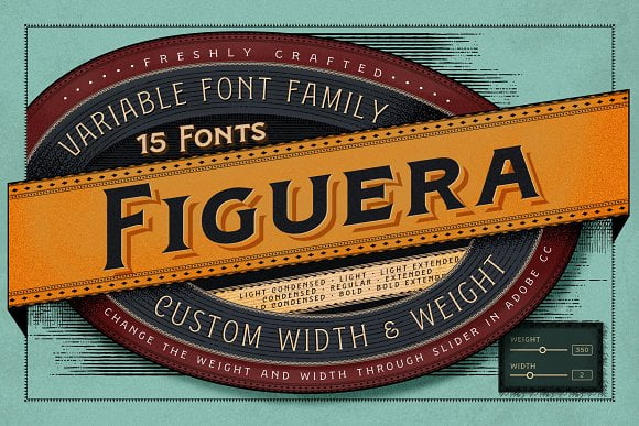 Figuera Variable is inspired by Victorian style serif typefaces. With a different width and weight you can make your design more fluid using only a single font family.