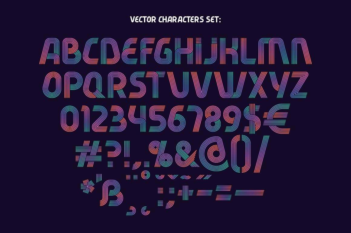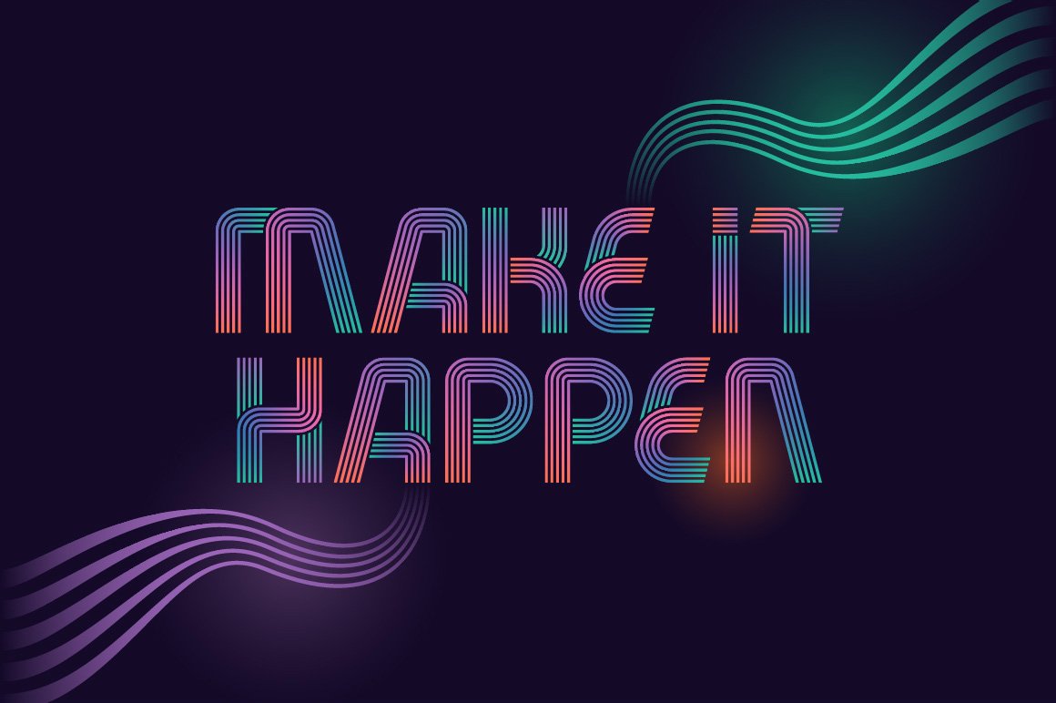 Hi, presenting a modern decorative font set named “Fiver”. It consists of five fonts with different lines variations. Gradient color effect with five lines font version is available in vector EPS format. Also two posters with lettering quotes are included in vector EPS.