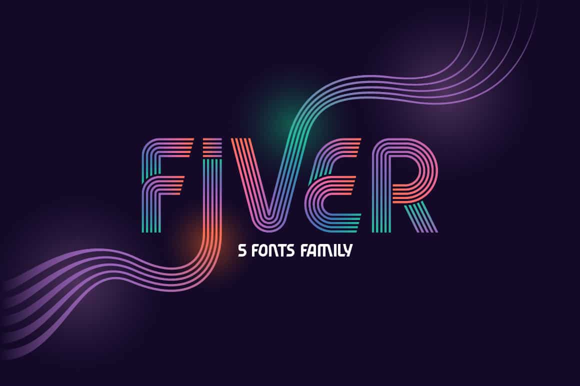 Hi, presenting a modern decorative font set named “Fiver”. It consists of five fonts with different lines variations. Gradient color effect with five lines font version is available in vector EPS format. Also two posters with lettering quotes are included in vector EPS.