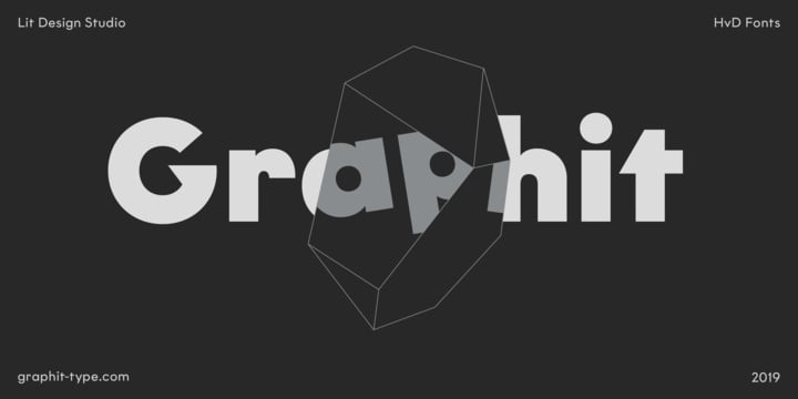Graphit is a typeface designed by Lit Design Studio & curated by HvD Fonts. It combines clear, geometric shapes with edgy yet finely-crafted details. Graphit features uncompromising characters such as G, Q, f, k and 1. It works well both for impactful headlines and for reading sizes. The type family consists of six weights plus matching italics.