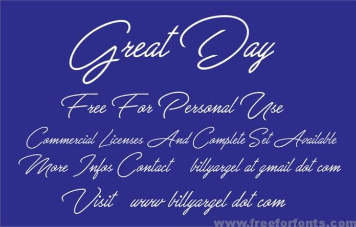 HomeFree FontsGreat Day Personal Use font Great Day Personal Use font Share FacebookTwitterVKReddItTumblrWhatsAppMixLinkedin Click to download Download freefonthttps://www.fontforlife.com 2018-11-05 Great Day Personal Use fontGreat Day Personal Use font Download LEAVE A REPLY Cancel reply Comment: Please enter your comment! Name:* Please enter your name here Email:* You have entered an incorrect email address! Please enter your email address here Website: Save my name, email, and website in this browser for the next time I comment. Search FontforlifeJoin Group https://www.fontforlife.com #font #freefont #graphicdesign #fonts #webdesign #design #fontdownload Reviews Mahenda Font Wren Font Americano Font Black Knight Typeface Related Articles Satomy Handwritten Font Nabana Display Font Midnightman Display Font Fresh Steak Font Rondos Display Typeface Font Balona Font Andove Font Hoax Font Alletha Font Phraell Font Niasec Lux Rasfire Font
