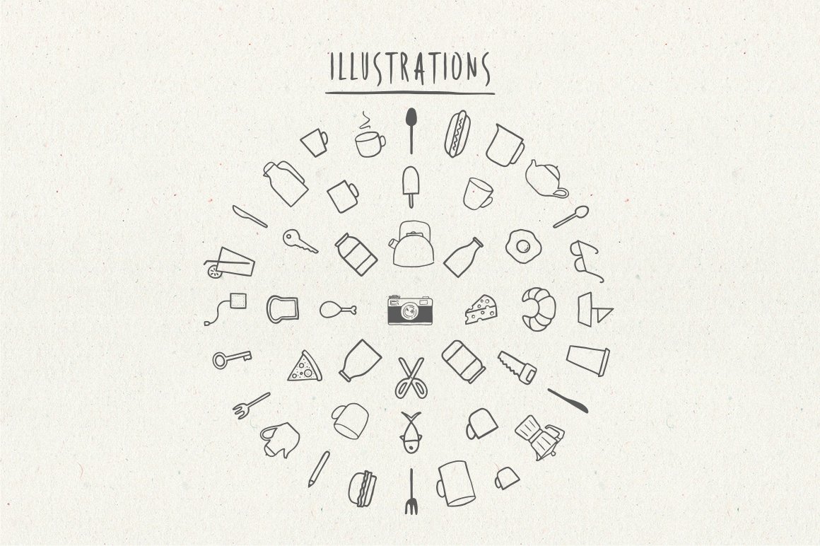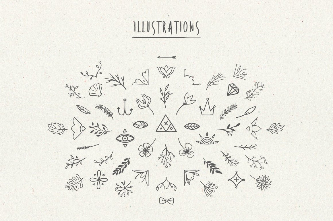Hiatus is one of the font that I really enjoy making it. With 100 illustrations and elements, you can mix and match with the font and make so many design alternatives. I also included 20 premade logo for you to use and edit it as you like. Suitable for food, craft, wedding, photography logo & stationery.