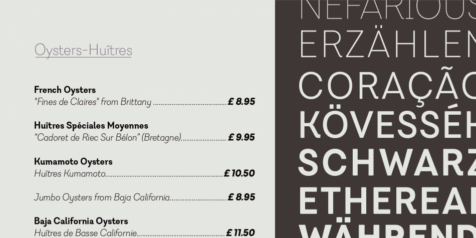 Javiera is a geometric sans-serif typeface with humanist attributes. One of its main features is its small x-height, which makes ascenders and descenders look longer. The contrast gives the font a more stylised look, typical of humanist fonts.