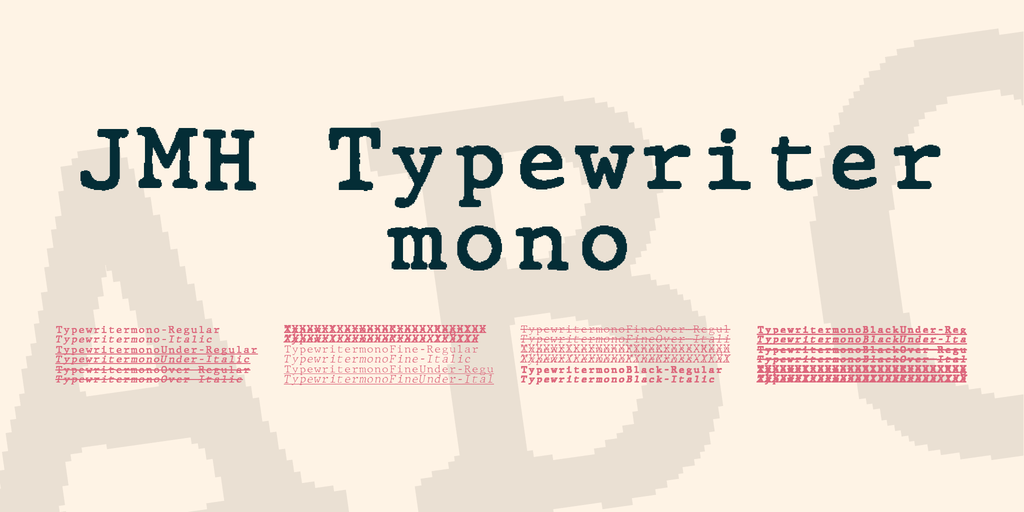 HomeFree FontsJMH Typewriter mono Font Family JMH Typewriter mono Font Family Share FacebookTwitterVKReddItTumblrWhatsAppMixLinkedin Click To Download Download freefonthttps://www.fontforlife.com 2019-10-23 JMH Typewriter mono Font FamilyJMH Typewriter mono Font Family Download LEAVE A REPLY Cancel reply Comment: Please enter your comment! Name:* Please enter your name here Email:* You have entered an incorrect email address! Please enter your email address here Website: Save my name, email, and website in this browser for the next time I comment. {{#message}}{{{message}}}{{/message}}{{^message}}Your submission failed. The server responded with {{status_text}} (code {{status_code}}). Please contact the developer of this form processor to improve this message. Learn More{{/message}}{{#message}}{{{message}}}{{/message}}{{^message}}It appears your submission was successful. Even though the server responded OK, it is possible the submission was not processed. Please contact the developer of this form processor to improve this message. Learn More{{/message}}Submitting… Search FontforlifeJoin Group https://www.fontforlife.com #font #freefont #graphicdesign #fonts #webdesign #design #fontdownload Reviews Huf Script Handwriting Font Felton Dafana Font Stadio Now Font Goda Font Related Articles Satomy Handwritten Font Nabana Display Font Midnightman Display Font Fresh Steak Font Rondos Display Typeface Font Balona Font Andove Font Hoax Font Alletha Font Phraell Font Niasec Lux Rasfire Font