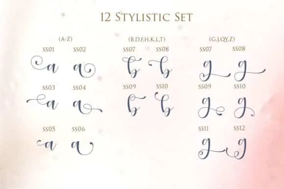 Kagure is a highly detailed, refined script font that emanates sophistication and elegance. Its stylish alternates and ligatures make this font the perfect match for any project. This font is PUA encoded which means you can access all of the glyphs and swashes with ease!