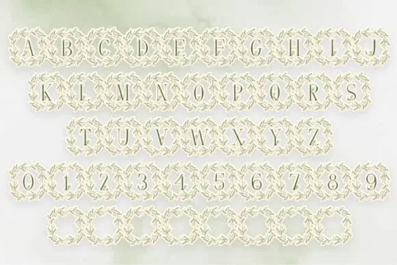 Leave Buds Monogram is a dainty and beautiful decorative font. Add this romantic and lovely looking font to each of your love letters, wedding invitations or favorite design ideas, and you will be astounded by the outcome.