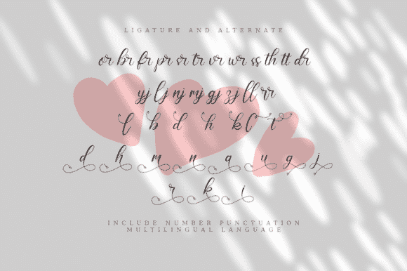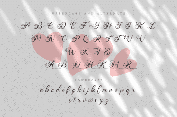 Love Hamtania is a romantic and sweet calligraphy font. It features heart-themed characters that will add a lovely touch to your designs. It’s perfect for stationery, greeting cards, branding and much more!
