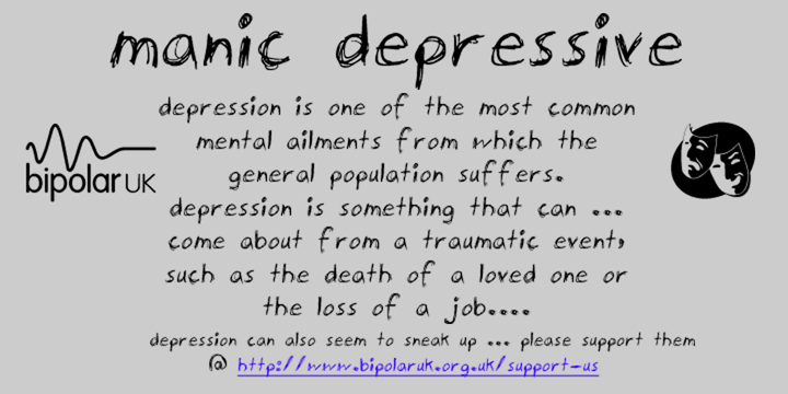 HomeFree FontsManic Depressive Font Manic Depressive Font Share FacebookTwitterVKReddItTumblrWhatsAppMixLinkedin Click to download Download freefonthttps://www.fontforlife.com 2019-04-20 Manic Depressive Font LEAVE A REPLY Cancel reply Comment: Please enter your comment! Name:* Please enter your name here Email:* You have entered an incorrect email address! Please enter your email address here Website: Save my name, email, and website in this browser for the next time I comment. {{#message}}{{{message}}}{{/message}}{{^message}}Your submission failed. The server responded with {{status_text}} (code {{status_code}}). Please contact the developer of this form processor to improve this message. Learn More{{/message}}{{#message}}{{{message}}}{{/message}}{{^message}}It appears your submission was successful. Even though the server responded OK, it is possible the submission was not processed. Please contact the developer of this form processor to improve this message. Learn More{{/message}}Submitting… Search FontforlifeJoin Group https://www.fontforlife.com #font #freefont #graphicdesign #fonts #webdesign #design #fontdownload Reviews Heart Rommatte Font Winter Sunday Font Spooky Ghosts Font Summer Vacation Font Related Articles Satomy Handwritten Font Nabana Display Font Midnightman Display Font Fresh Steak Font Rondos Display Typeface Font Balona Font Andove Font Hoax Font Alletha Font Phraell Font Niasec Lux Rasfire Font