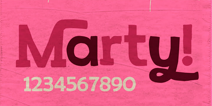 Marty is an informal hand-drawn slab serif typeface with a playful boyish mood. He supports many European languages, as well as Cyrillic. This font has rich possibilities in the form of alternative glyphs, swashes and rare ligatures. It was designed by Rodrigo Arai Salas in 2014.