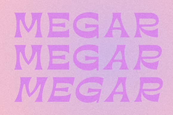 Megar font, a bold display typeface with a retro feel. Megar is suitable to complement your work with a retro or pop art theme