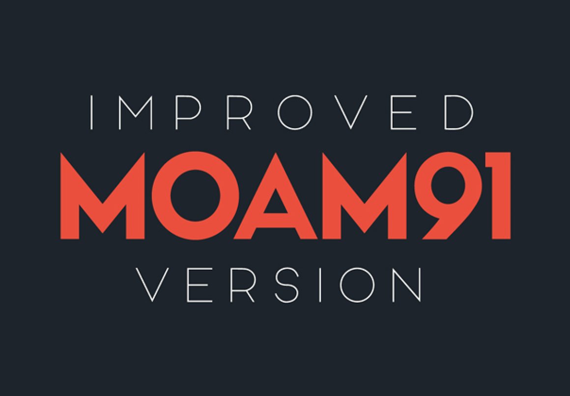 Introducing MOAM91, a geometric sans-serif style typeface. This bold font has a beautifully modern look and feel. Also available in two different weights; bold & light. Enjoy!