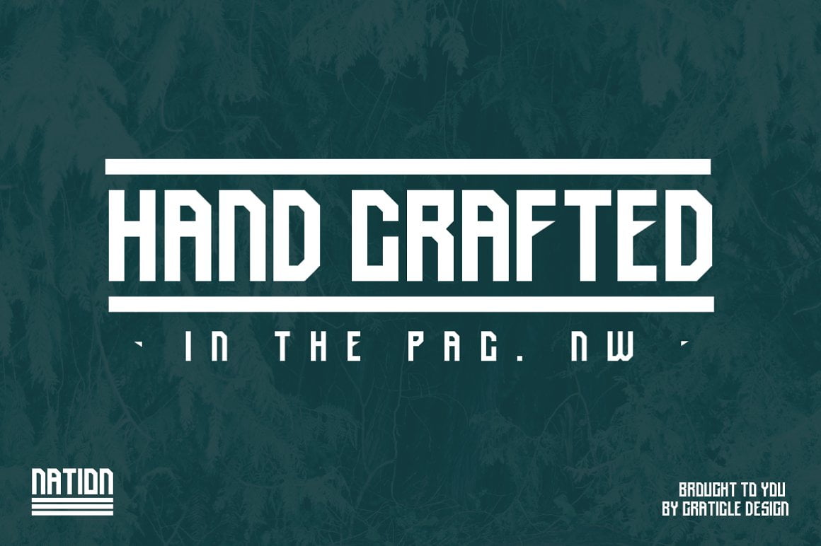 NATION comes with uppercase characters, numbers, and a handful of symbols. Check out the fifth image for a preview of every character/symbol included in the font.