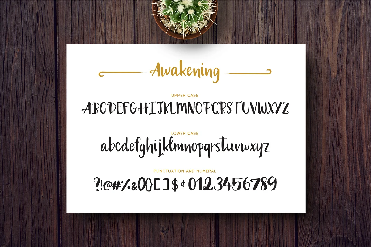 Awakening is a fun handwriting font blended with a unique twist on the serifs. The font is perfect for your design needs such as branding, greeting cards, invitation, special events, stationery, scrapbooking, home goods, etc.