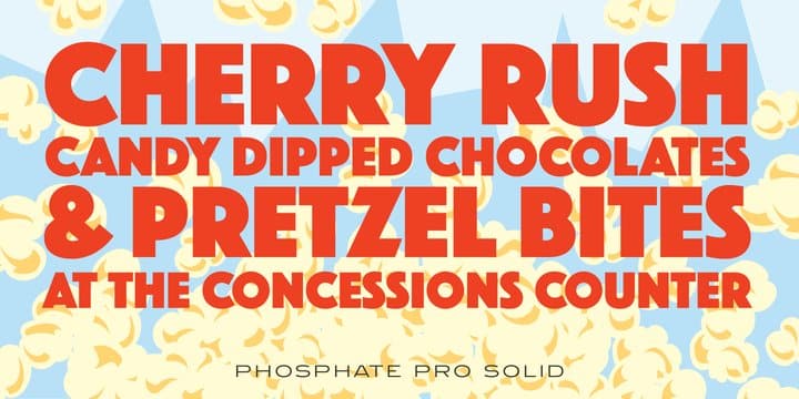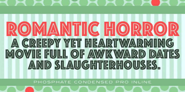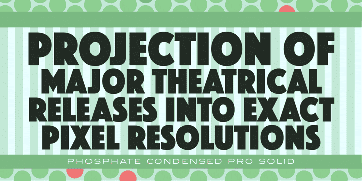 Phosphate Pro is an all-caps sans serif font family with an inline weight, and was created by Steve Jackaman (ITF) and Ashley Muir in 2010. The original Phosphate was published by International TypeFounders, and the family was based on the ‘Phosphor’ typeface created by Jakob Erbar for Ludwig and Mayer, circa 1922-30. Jackaman created a condensed variant, ‘Phosphate Condensed Pro,’ in 2017. Phosphate Pro has incredible presence, and its power shines in display format. Apple, who is notoriously selective about their software choices, included Phosphate Pro in the system fonts for Apple’s OS X 10.10 Yosemite.