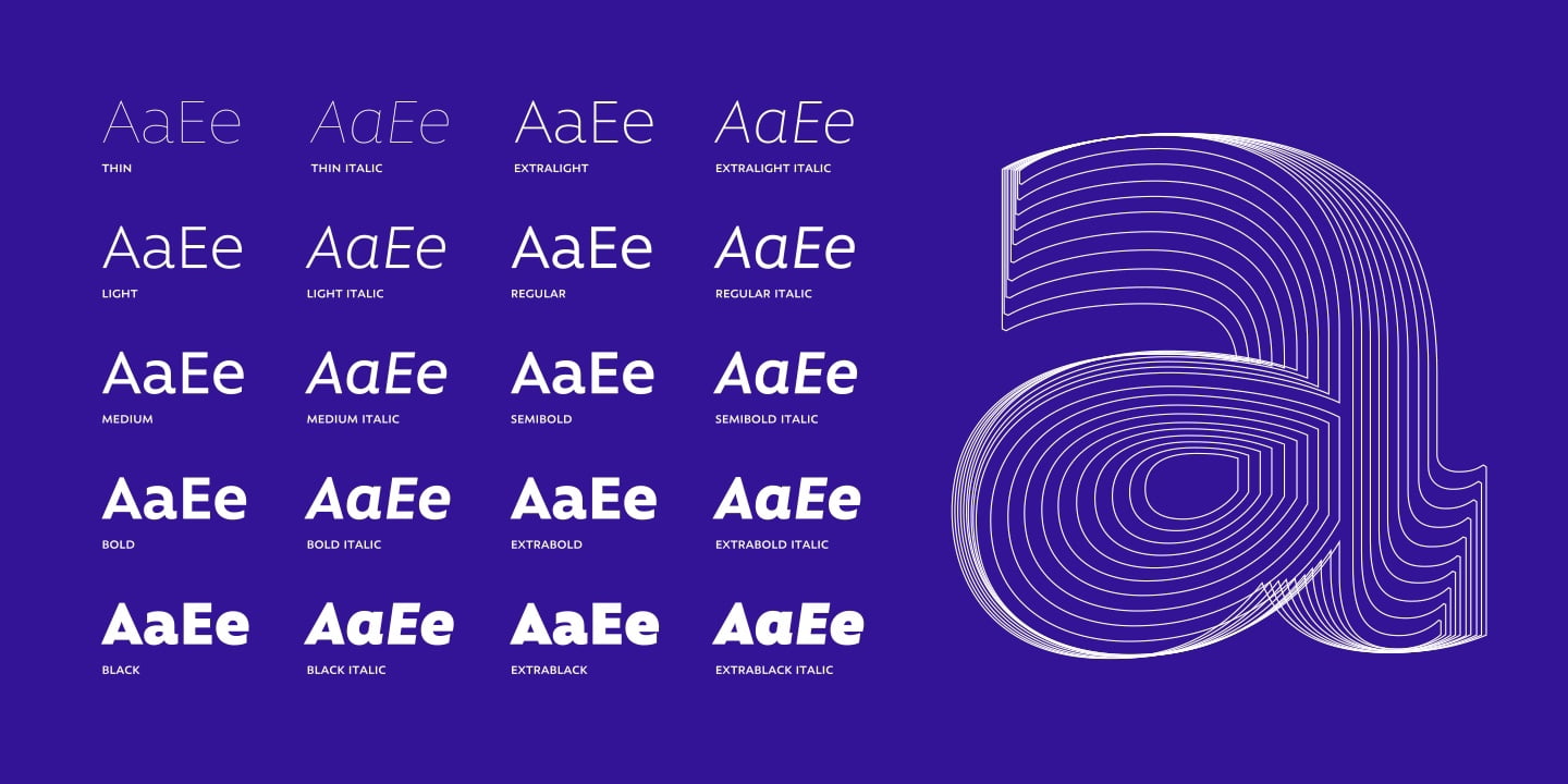Rawson is inspired by early humanist sans-serif English typefaces. We have added a bit of Johnston, a bit of Gill and a lot of Latinotype to the font. Rawson is an elegant font—but definitely not a black tie one—with the strength of a geometric sans but as friendly as a humanist typeface. This mixture, though not capricious, gives the font a ‘classic’ personality and a modern look at the same time. Rawson is a typeface with a large x-height, open counterforms and classical ductus. The font is well-suited for branding, signage, packaging and short text.