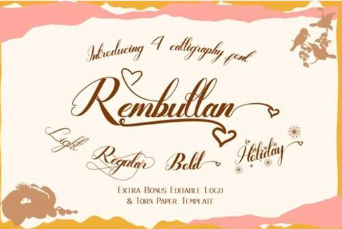 HomeFree FontsRembullan Font Rembullan Font Share FacebookTwitterVKReddItTumblrWhatsAppMixLinkedin Click to download Download freefonthttps://www.fontforlife.com 2019-05-15 Rembullan Font LEAVE A REPLY Cancel reply Comment: Please enter your comment! Name:* Please enter your name here Email:* You have entered an incorrect email address! Please enter your email address here Website: Save my name, email, and website in this browser for the next time I comment. {{#message}}{{{message}}}{{/message}}{{^message}}Your submission failed. The server responded with {{status_text}} (code {{status_code}}). Please contact the developer of this form processor to improve this message. Learn More{{/message}}{{#message}}{{{message}}}{{/message}}{{^message}}It appears your submission was successful. Even though the server responded OK, it is possible the submission was not processed. Please contact the developer of this form processor to improve this message. Learn More{{/message}}Submitting… Search FontforlifeJoin Group https://www.fontforlife.com #font #freefont #graphicdesign #fonts #webdesign #design #fontdownload Reviews Spring Butter Font Morning Class Font Strangeways Sample Font Free Download Novante Font Related Articles Satomy Handwritten Font Nabana Display Font Midnightman Display Font Fresh Steak Font Rondos Display Typeface Font Balona Font Andove Font Hoax Font Alletha Font Phraell Font Niasec Lux Rasfire Font