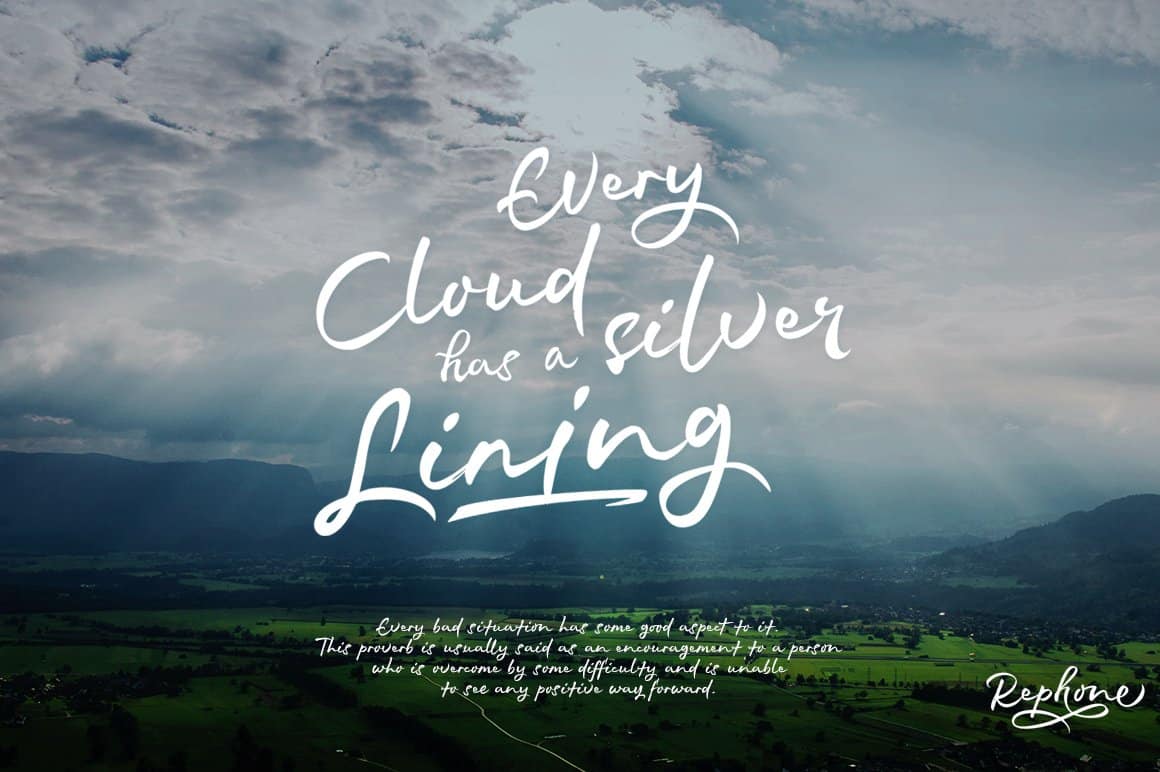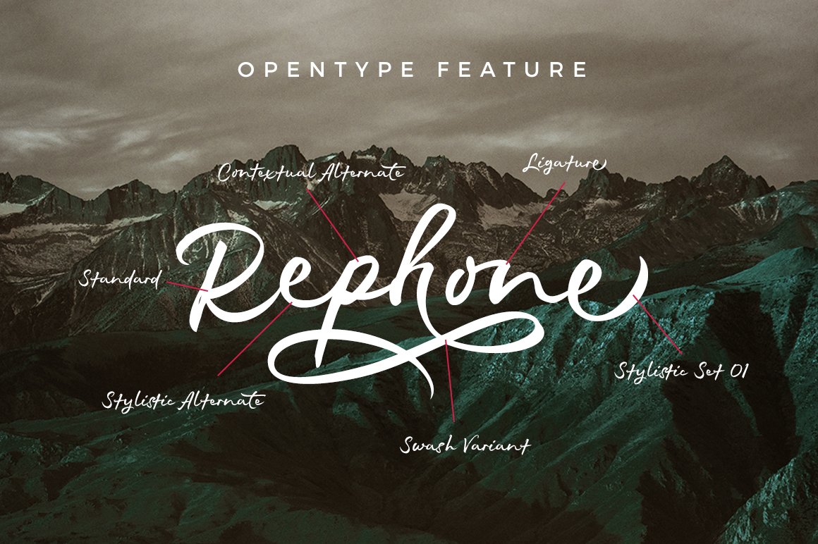 Rephone is a handwriting font that has a force and rush personality but still beautiful. Each letter was made with love so that it can work well with one another. Rephone are designed to work well on the design like invitation, clothing, photography, branding, album covers, signature and the style that can work well with this font. Rephone support Multiple Language & OpenType features, that can allow you to choose a character that you like and suitable for the project you’re working on.