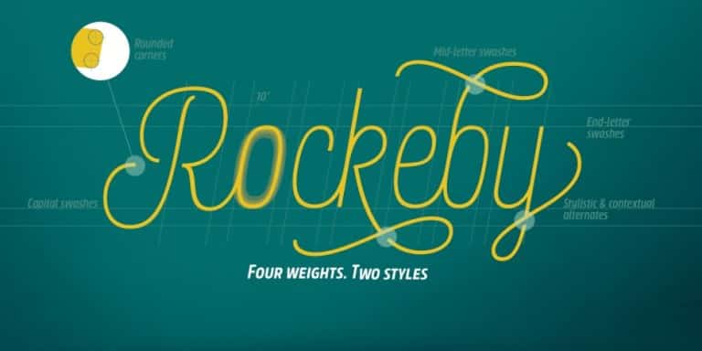 Please welcome the new grotesque family; slightly more geometric than Block Berthold but much softer than the industrial Din Next, Rockeby includes a lot of stylistic alternates and ligatures to help add character to any type of design. The slightly curved diagonal strokes give the sans serif fonts its unique personality and soft look. Even more – the family has two scripts (4 weights each) which will enhance the design even more. Combining italic with the script has never been easier – they both have the same italic angle. These scripts also benefit from contextual alternates, swashes and ligatures. And last but not least, the family also includes Extras fonts (which also have 4 weights) which can further enhance any design you are creating. There is an new addition to the family – Rockeby SemiSerif and Rockeby Brush families!