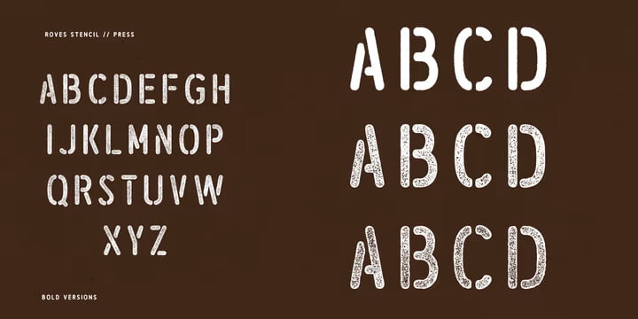 Roves is a font family dedicated to exploration, adventure and the early merchants of history. The word rove means “a journey, especially one with no specific destination; an act of wandering”. the family consists of three Stencil versions each with a Regular and Bold weight as well as two Sans versions each also with a regular and bold weight, this is a total of 10 different options to work with.