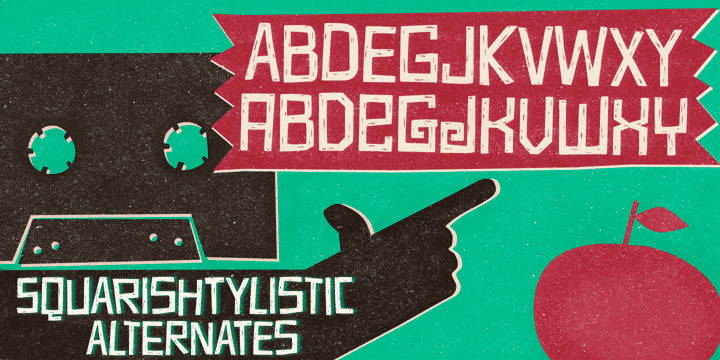 Sabotage is inspired by the iconic Vertigo movie poster by Saul Bass. It is a bold all-caps font that fits a wide range of eye-catching design projects surprisingly well. Check it out! Sabotage offers two versions for each letter, stored in upper- and lower-case slots. When turned on, its contextual alternates feature will instantly alternate these glyphs, preventing double letters from displaying the same letterform while boosting the nice handlettered feel of the typeface. The font is also loaded with a set of stylistic alternates and a couple of discretionary ligatures for even more flexibility. Sabotage is available in 2 flavours, solid and not-that-solid. The family also counts a cool complementary picture font which sort of draws inspiration from the minimalistic – but always striking – book-cover illustrations of Dick Bruna.