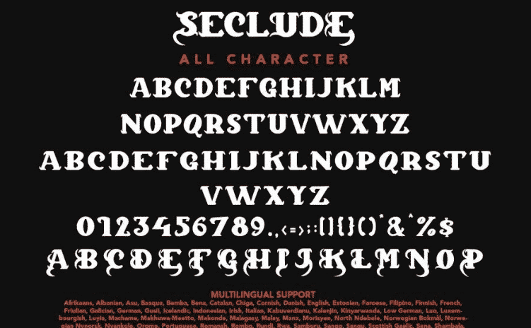 Seclude – Blackletter Font is a display font that is inspired by horror and gothic style because its shape is very unique and is perfect for any project that you will use with this theme.