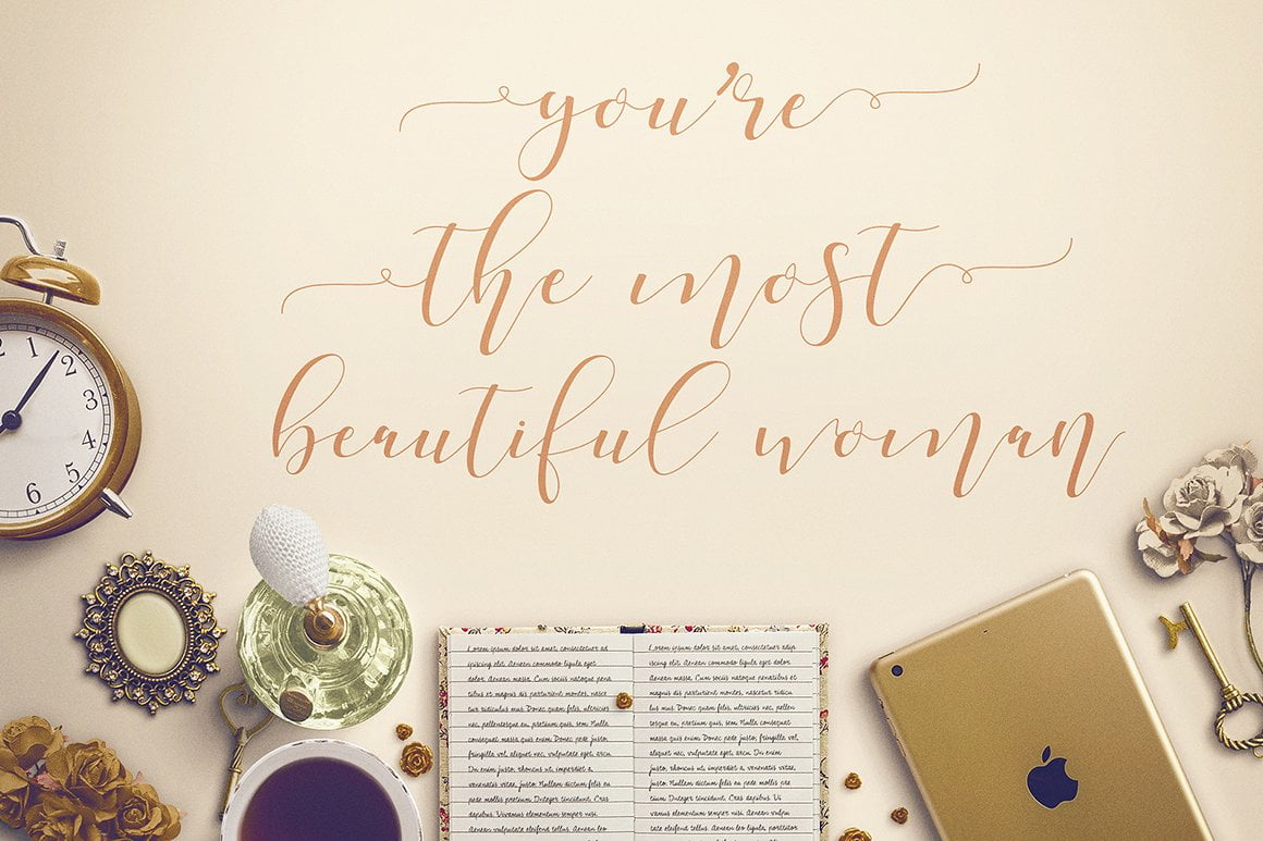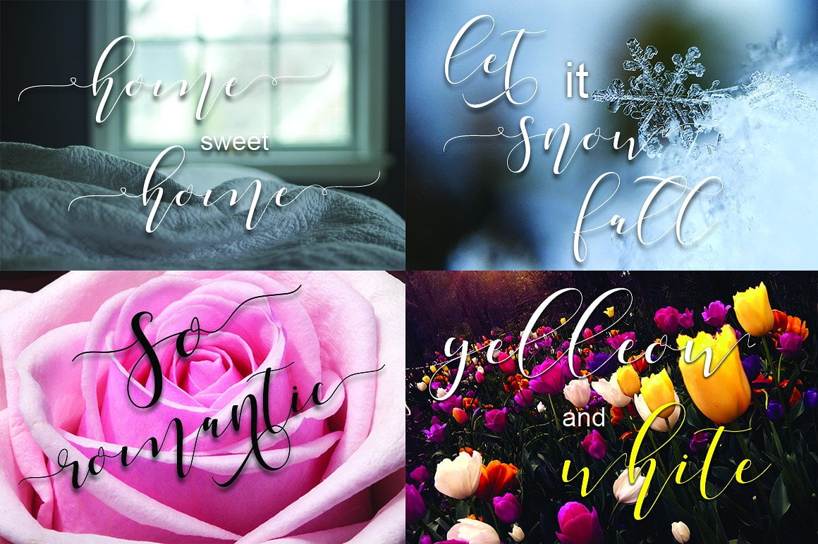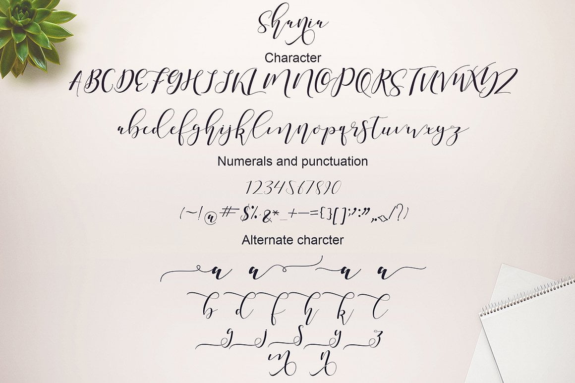 Shania a sweet calligraphy modern script style, decorative characters and a dancing baseline! So beautiful on invitation like greeting cards, branding materials, business cards, quotes, posters, and more!!