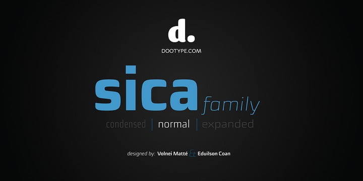 The Sica Family was designed in order to address issues related to technology, while maintaining humanistic forms. Thus, a font with square shapes emerged, but with smooth curves and slightly rounded terminals making it friendly. The family has three widths – condensed, normal and expanded – each of them with six weights and their respective italics, resulting in 36 fonts. With particular details and open shapes that increase legibility, it can be used for both text compositions as well for display sizes. It has 774 glyphs, covering more than 50 languages, as well as ligatures, lining, oldstyle, tabular and proportional figures, fractions, superiors, inferiors, and small caps, all of them accessible through OpenType features.