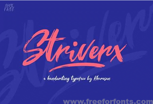 HomeFree FontsStriverx Brush Font Striverx Brush Font Share FacebookTwitterVKReddItTumblrWhatsAppMixLinkedin Click to download Download freefonthttps://www.fontforlife.com 2019-02-11 Striverx Brush Font LEAVE A REPLY Cancel reply Comment: Please enter your comment! Name:* Please enter your name here Email:* You have entered an incorrect email address! Please enter your email address here Website: Save my name, email, and website in this browser for the next time I comment. {{#message}}{{{message}}}{{/message}}{{^message}}Your submission failed. The server responded with {{status_text}} (code {{status_code}}). Please contact the developer of this form processor to improve this message. Learn More{{/message}}{{#message}}{{{message}}}{{/message}}{{^message}}It appears your submission was successful. Even though the server responded OK, it is possible the submission was not processed. Please contact the developer of this form processor to improve this message. Learn More{{/message}}Submitting… Search FontforlifeJoin Group https://www.fontforlife.com #font #freefont #graphicdesign #fonts #webdesign #design #fontdownload Reviews Sweet Home Font Mordens Font Lustinmal Script Font Free Download Hello Firstie Font Related Articles Satomy Handwritten Font Nabana Display Font Midnightman Display Font Fresh Steak Font Rondos Display Typeface Font Balona Font Andove Font Hoax Font Alletha Font Phraell Font Niasec Lux Rasfire Font
