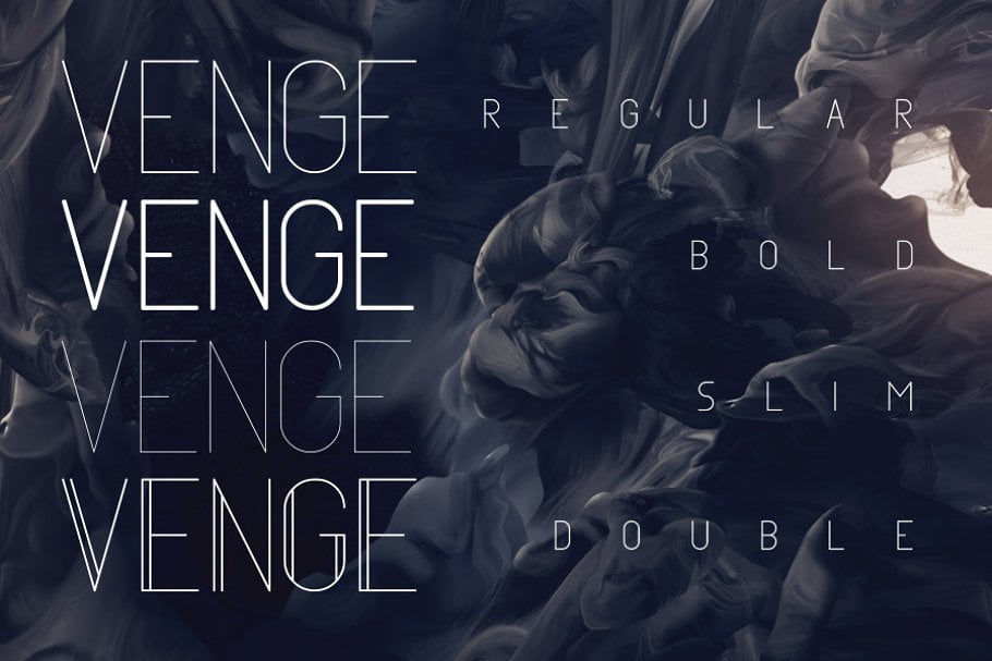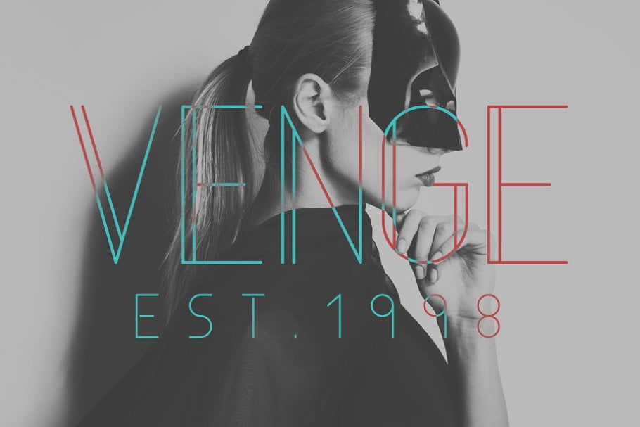 Venge is a thin, fashionable display typeface in 4 different styles. It includes uppercase English letters, some alternate letters which you can toggle with Caps Lock, numbers and punctuation.