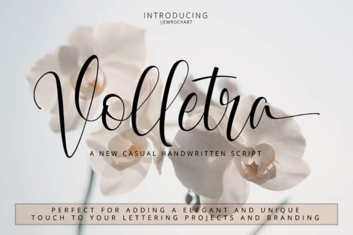 Befonts always want to introduce you to the highest quality fonts, and today is a new casual handwritten script font. Introduction Volletra Script Font! Volletra Script designed and shared by Pathero Studio and IjemRockArt . It appears incredible within wedding and event invitations, printouts, logos and branding, apparel, and everything in between. As a result, making life a whole lot easier for you to switch between all of the wonderful letter combinations to truly bring your work to life!