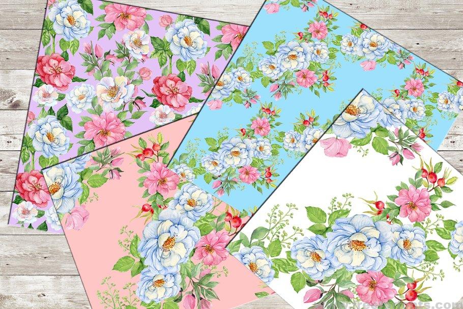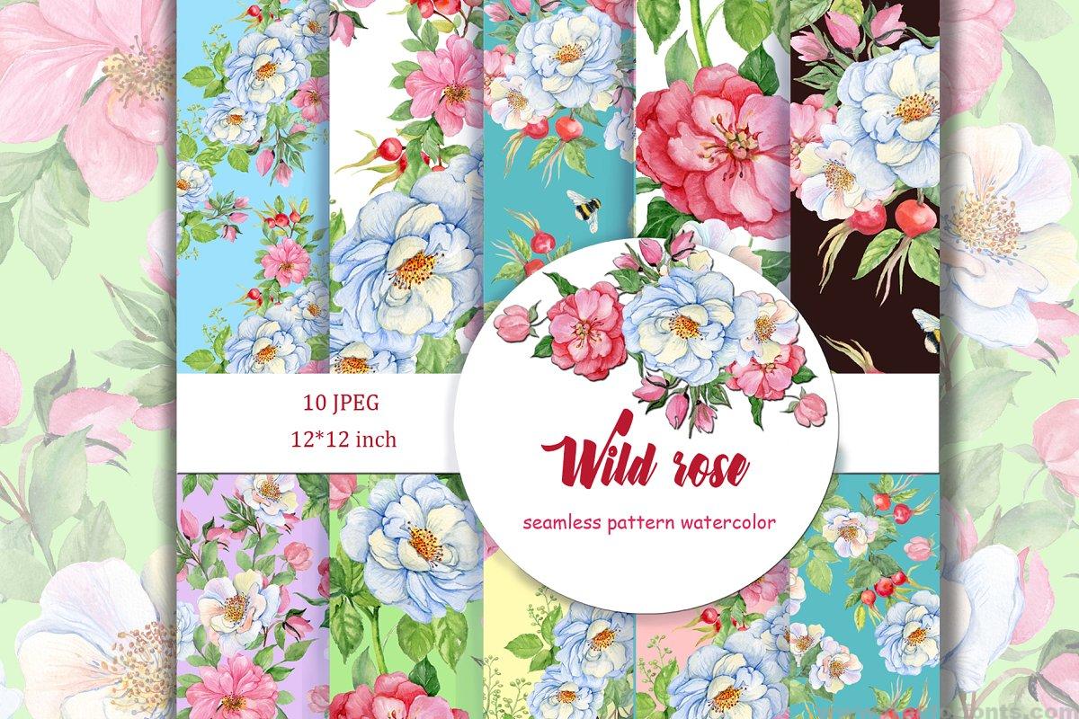 Wild rose, seamless patterns