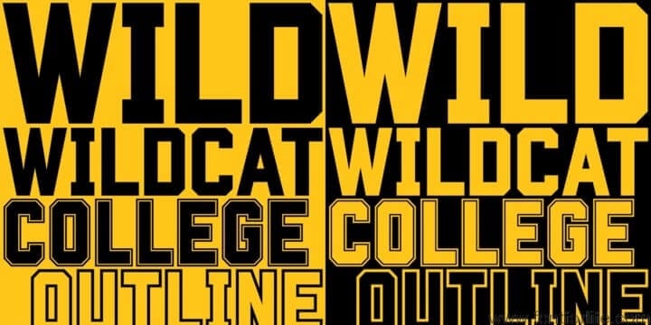 The starting point for Wildcat was the 3×5 squared grid popular for tiled lettering and American sportswear typefaces. However, Wildcat breaks free of the net whenever necessary. This typeface comes across as tough, it has no soft curves, and evokes strength and confidence. Unlike other collegiate-style fonts, Wildcat includes a real lowercase which makes the face particularly usable and adaptable. Wildcat also contains a full complement of Latin Extended-A characters. Three fonts are included in the download; Regular, College and Outline. The College and Outline fonts share identical spacing and kerning, so can be overlapped to create bicolor artwork.